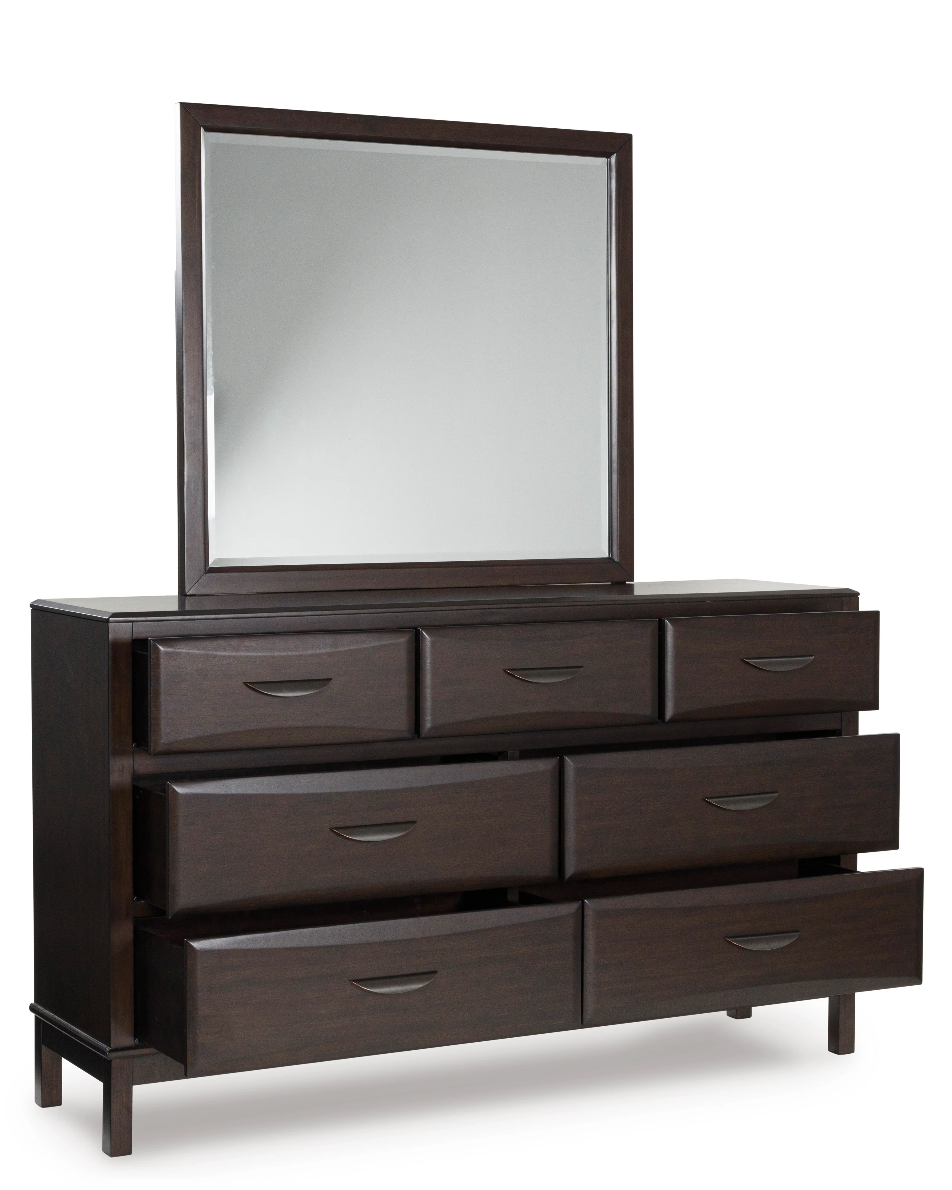 A rich, metropolitan finish. Unbeatable function. With this dresser and mirror, it’s a breeze to create a casual contemporary hideaway full of style and convenience. It combines thoughtful craftsmanship and handy storage, with smooth-gliding drawers to help keep clothes and linens organized. Metal bar pulls complete the look with added flair.